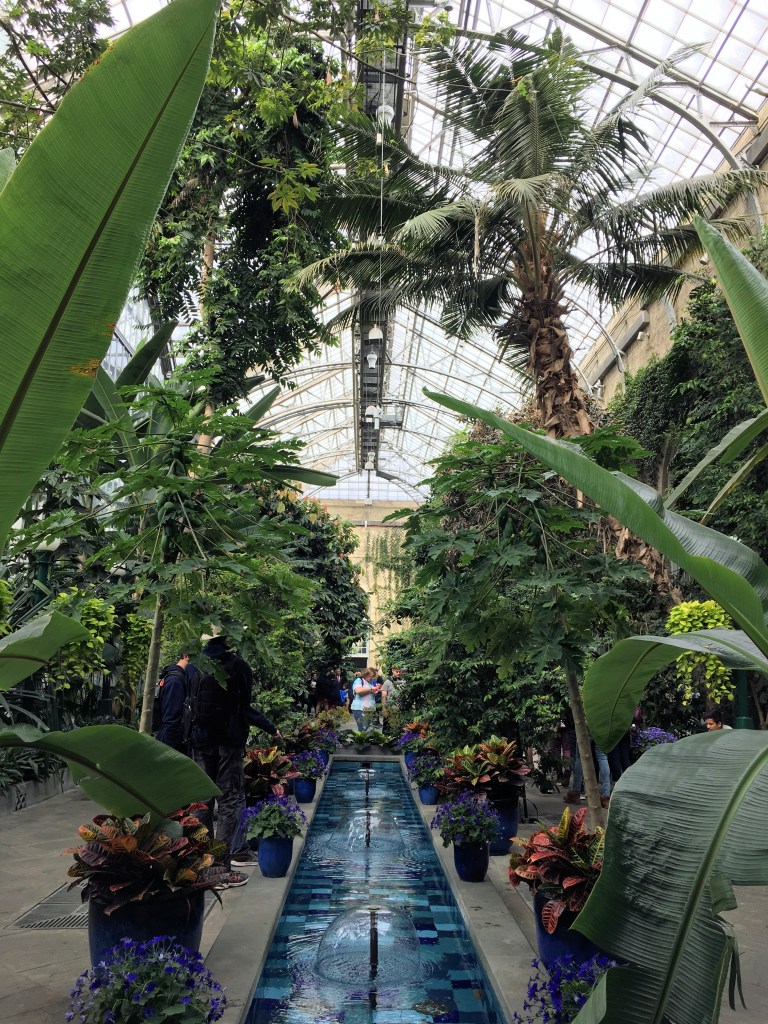 As I approached, I could see the towering conservatory above the trees, and I got as giddy as a kid in a candy store. I couldn’t wait to step inside and transport to different climates and places around the world, marveling at the flora, all while staying under one roof. I was in awe when I discovered that the greenhouse contains ten garden rooms and two courtyard gardens, totaling a whopping 28,944 square feet of growing space! I could only dream of working in a greenhouse that size!