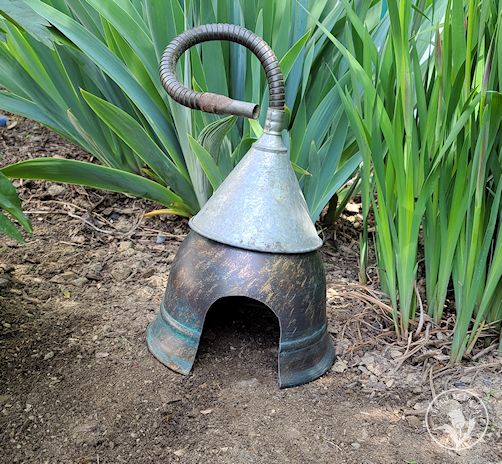Offering shelter was another necessity. Most frogs and toads dehydrate quickly in the sun and therefore prefer shady, moist areas. Being primarily nocturnal, they need a place to hide from predators during the day. Shelters can be as simple as arranging stones to create a cave or using broken clay pots set on their sides. Alternatively, you could have some fun and create a one-of-a-kind toad abode. As I enjoy crafts and building projects, I decided to create a unique toad abode out of an old funnel I found at a salvage yard and a plant pot. I turned the pot upside down and cut a hole to allow the toads to enter. I then used the funnel as a whimsical roof for the house.