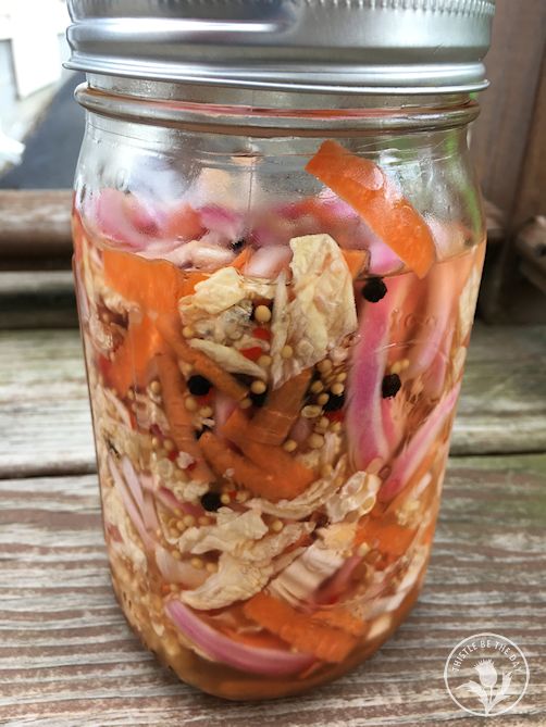 I also pickled vegetable scraps, including leftover cabbage, red onion, and carrot peels for use as a slaw on sandwiches. Pickling is a great way to use up vegetables in the fridge that might have otherwise gone into the compost pile. In the future, I look forward to trying many other recipes that will incorporate scraps, such as carrot top pesto, candied citrus peels, and vegetable peel chips, to name a few. Making food from scraps typically considered waste was a fun and delicious experiment!