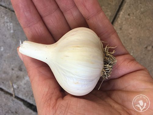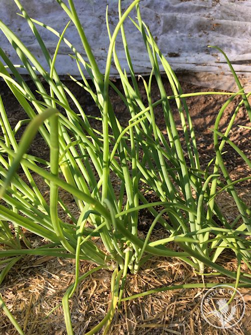 I am also captivated with hardneck garlic because the bulbs are not the only delectable treat that the plant offers. Around mid-June, the plants start to send up their scapes, which are the plant’s flowering part. Trimming off the scape before it flowers will allow the plant to put it’s energy into bulb production. The scapes themselves are a delicious culinary treat, exquisite in stir fry and pesto dishes. Just one more reason to love the garlic growing experience!