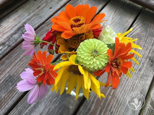 A Bouquet From My Mini Meadow Includes Cosmos, Sunflowers, and Zinnias