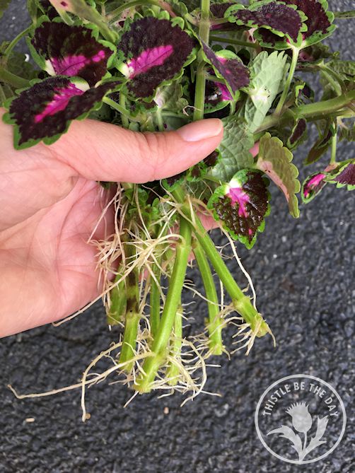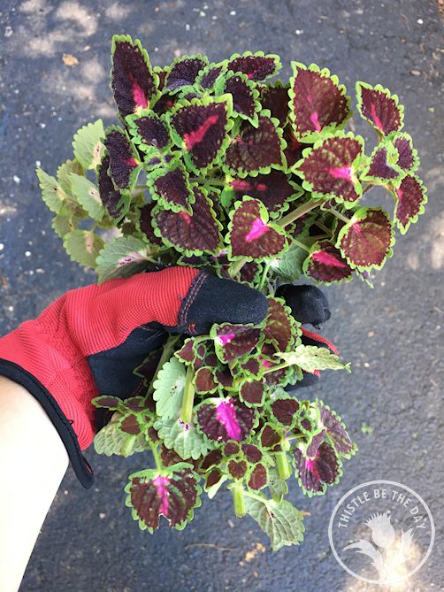 Another reason I have learned to love coleus is their ease in propagation from cuttings. If my coleuses start to get a little leggy, I trim the stems, root them, and pot them for more beautiful plants to place around the yard. Talk about getting more bang for your buck!