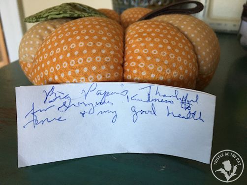 My personal gratitude slips over the years have given thanks for things such as time with family, animal companions, seeds and my garden, favorite recipes, good books, animal sanctuaries and rescue groups, freedoms, and hobbies, to name a few. Each year I try to find joy and gratitude in the simplest of things: a walk on the beach, a cup of tea while snuggled under a blanket, or a good movie on a Friday night with a heaping bowl of popcorn.