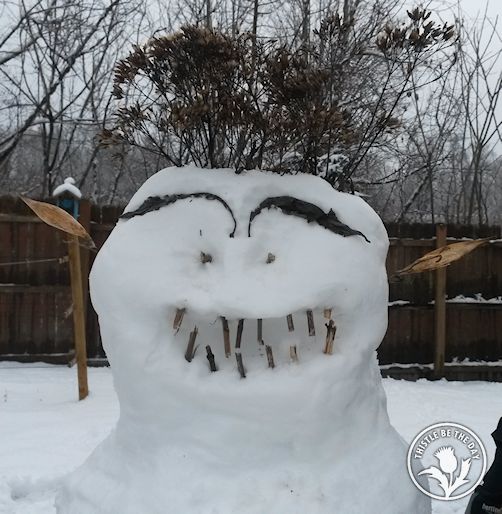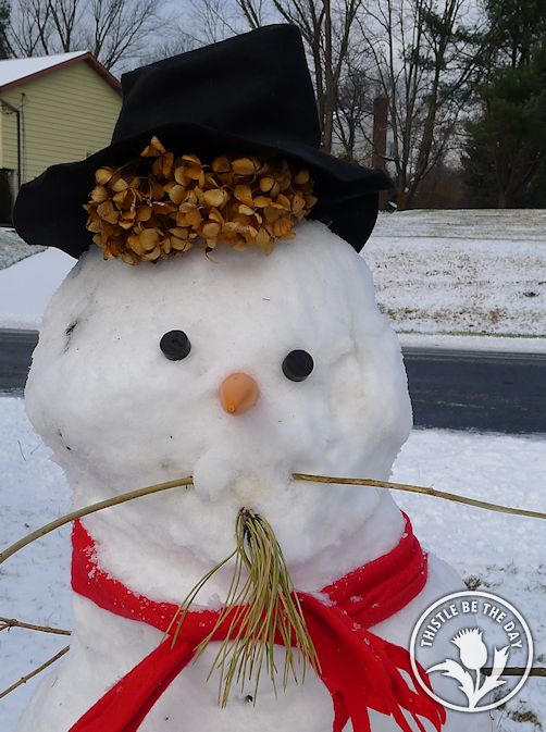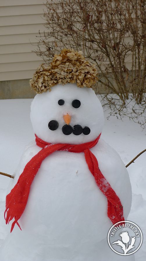 When I had a child of my own, I tried to pass down some of these traditions that held such a special place in my heart. Sharing the magic of what a snowfall can bring. I’ve lost count of how many snowmen and snow creatures I’ve sculpted over the years. Each one unique and special in its own way. What fun to scavenge the yard to find the perfect foliage for hair or the ideal twigs for arms. Dried hydrangea blooms, pine needles, honey locust seed pods, and Echinacea stems are all fair game for creating features on a snow sculpture. Often these accouterments are themselves buried in the snow, making searching for them even more fun. A game of “who can find the best buttons?” would often ensue. And an old hat or scarf could give our new snowy friend the perfect finishing touch.