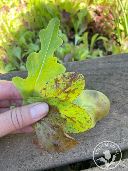 In truth, I do have one gripe with lettuce. Unlike its vegetable garden companions, lettuce is best eaten fresh and raw. You can’t freeze it, can it, or dry it, and there are very few recipes where you can cook it, so it doesn’t preserve well. You can put it in a salad or on a sandwich or wrap, and then your options start to run out.