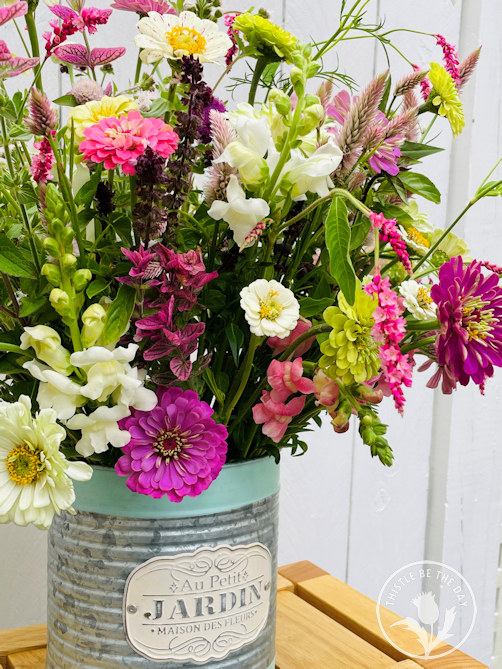 A few months ago, I attended a peony workshop where I learned a few flower arranging tips. Ever since then, I have become passionate about making bouquets and arrangements. I love the idea of bringing flowers indoors. Carrying a bouquet in from the garden can change the entire mood of the home (and of the people in it). Being an artist at heart, I find that creating an arrangement combines my love of flowers and art. You are still creating a masterpiece when arranging flowers, except instead of using paint, ink, or pencil, the medium is living blooms. There is something beautiful and organic about that.