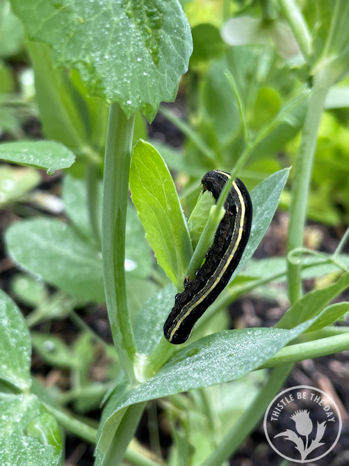 Besides lettuce and peas, I harvested the last carrots, dry beans, peppers, and tomatoes. Cooler nighttime temperatures have slowed their growth, but they are still producing. I have harvested handfuls of green tomatoes that will not have time to ripen. But, there is no need to despair, as they have been cut, battered, and frozen for winter enjoyment- a welcomed taste of summer in the dead of winter. The cooler weather has also helped to cut down on pest pressure, which allows me to focus on other aspects of the garden. Although, I did find a few rogue Armyworms in the pea patch.