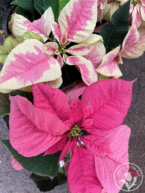 And if you think that poinsettias are dated and a little too traditional for your taste, you may want to check out your local nursery of late. Poinsettia breeders have been stepping up their game in recent years. These are no longer your grandmother’s poinsettias! There are now over 100 varieties available, not only in the traditional solid red, white, and pink, but in variegated, speckled, and double blooming varieties. And a relatively new compact type called Princettia, in shades of pink and reaching just 7-10 inches tall is taking social media by storm.