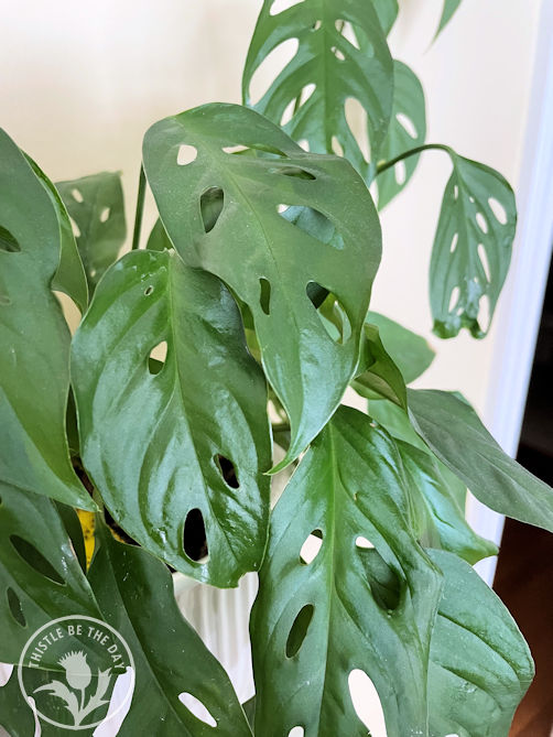 - Monstera Swiss Cheese Plant (Monstera adansonii): These plants have become very popular in greenhouses and floral shops for a good reason. Typically, plant lovers would be upset to find holes in their plants’ leaves- often evidence of insect damage. But, the holes in these leaves are intentional, developing in a process called fenestration. I find the fact that this plant intentionally grows a unique pattern of holes in its leaves both fascinating and endearing.