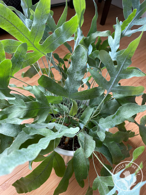 - Blue Star Fern (Phlebodium aureum): The strappy leaves of this fern are gorgeous blue-green that tend to resemble the foam fingers you would get at a baseball game. In a light breeze, they look like they are waving hello. This fern’s unique leaf shape and color have won me over, and it quickly made my top five list.