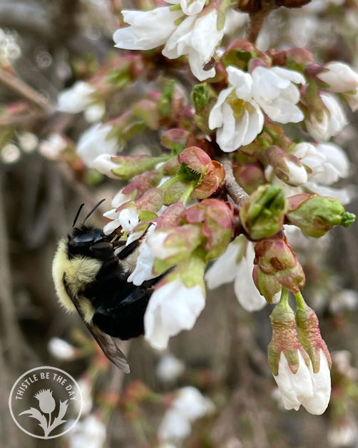 Many other spring flowers have started to bloom in April, including forsythias, crabapples, and magnolias. The weeping cherry tree put on a delightful display of creamy white flowers abuzz with pollinator activity. I could have stayed under the flower-laden branches for hours, watching the bees buzz back and forth. How wonderful to see these pollinating garden companions once again! And the scent from those blooms was intoxicating, like an elixir to all the winter woes. Of course, the show was fleeting as the blooms only lasted a few short days, but what a show it was!