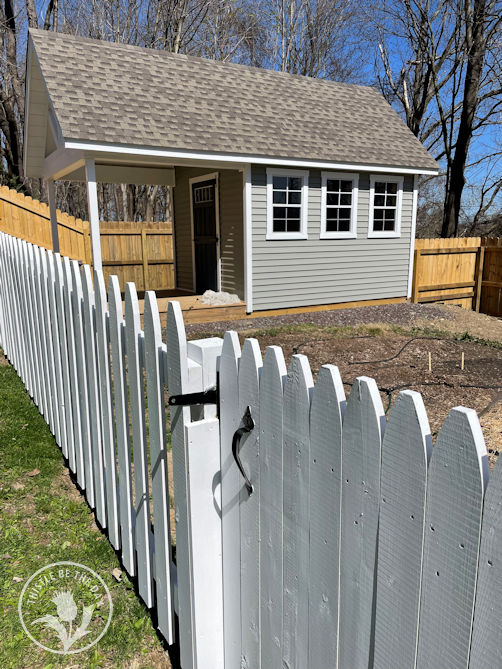 Lastly, I wanted to give an update on the new garden space. We have made some progress with several completed projects and the starting of others. The new retaining wall is finished, and we couldn’t be happier with how it turned out! The landscaping crew we hired did a fabulous job. They still have a few more minor details to finish around the site, but it was great to complete this significant piece of the project. The new picket garden fence got a coat of bright white paint, and I love how it looks. It transformed the garden space and matches so nicely with the potting shed. In the shed, or floral studio, as I like to call it, we painted the walls a creamy white and laid down flooring. It is so exciting to see the project coming together. There is still much work to do in the new garden space and studio, but it is exhilarating to see progress being made.