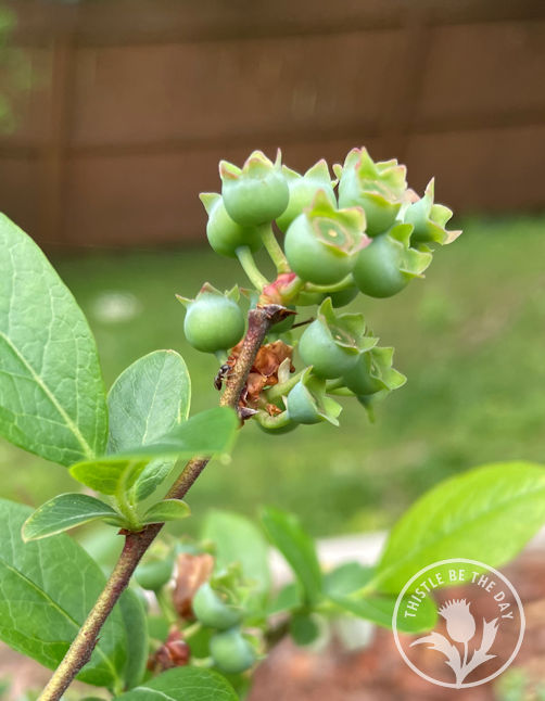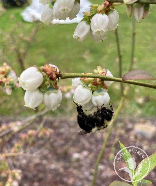 As some plants ended, others began! Walks through our landscape in May revealed that the blueberry bushes had started blooming, and the bees happily buzzed around the patch, sipping nectar and pollinating the flowers. Soon after, the blooms faded and dropped, and the fruit started to form. That meant it was time to place the bird netting over the patch, and with a little effort and several helping hands, we were able to accomplish this task one afternoon last week.