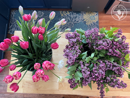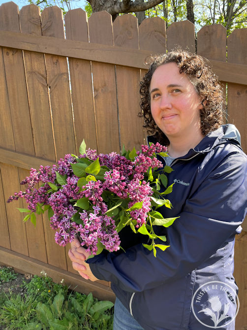 This month, other flowers appeared, including lilacs, ranunculus, anemones, baptisia, and peonies. We were also able to harvest the first of our lettuce. The lilacs this season were exquisite and, with the help of some new harvesting methods I learned, lasted much longer in the vase. I brought armloads into our home and made several arrangements that smelled divine with their signature lilac scent. I love the ‘Sensation’ variety with its purple florets lined in white and wanted to add another variety to my lilac collection this month. So, I planted a new type called ‘Beauty of Moscow’, whose blooms are light pink and highly fragrant.