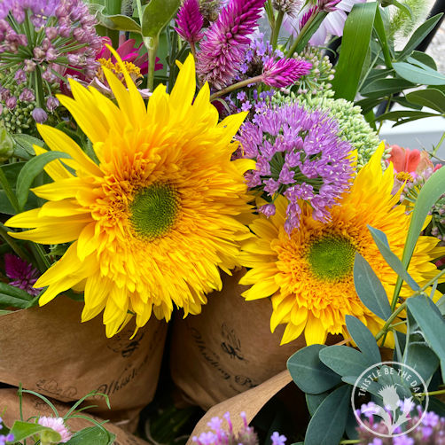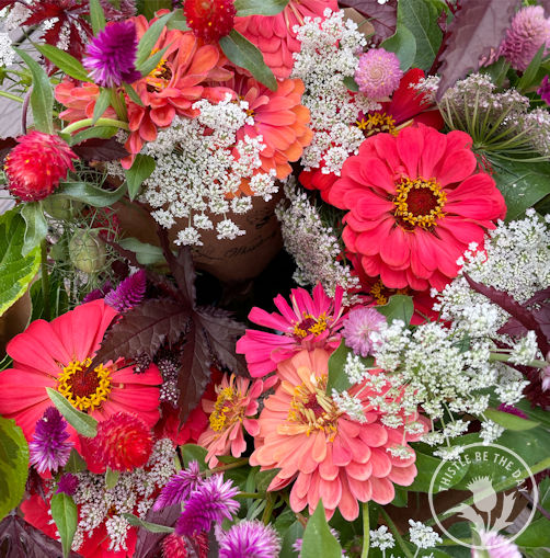 Fresh flower bouquets have been going out weekly to happy customers and have included a kaleidoscope of colors that signify the best of summer, from the bright yellows and pinks to the moody shades of plums and purples. We have also donated flowers to local nonprofit organizations like Abloom that distribute the arrangements to shelters, food pantries, and nursing homes to brighten people’s lives. Donating a portion of our flower harvest has been a part of our mission here on Whistling Bee Farm from the start, and we are delighted to share our flowers in this way.