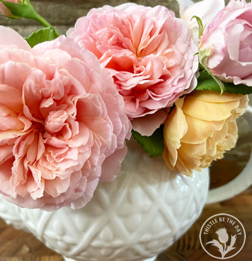 Somehow, despite the water woes, we have still managed to cultivate much beauty on the farm. The zinnias are in full bloom, and the sunflowers, gomphrena, celosia, cosmos, and laceflower continue to thrive. Unfortunately, due to our unusually cool spring, the dahlias are at least a month behind. But, they are finally starting to flower and hit their stride. And we were delighted when the second flush of roses began to bloom.