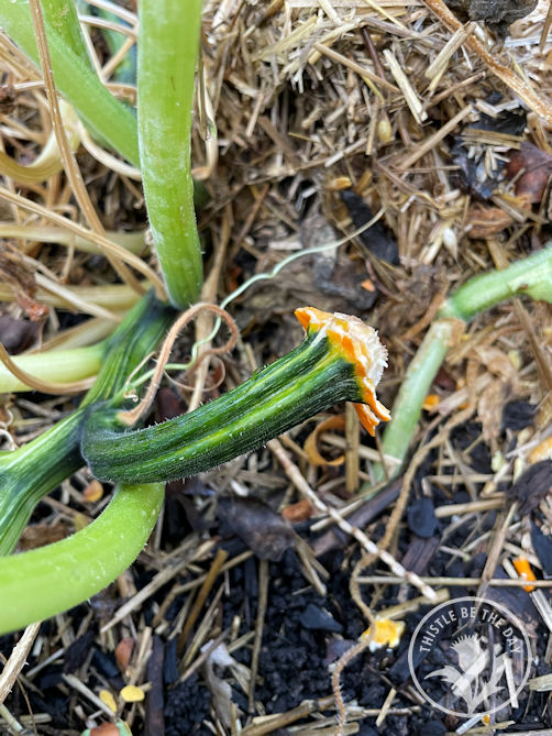 I’ve also noticed how much the lack of water affects wildlife. The chipmunk and bird pressure on our edible crops is unprecedented this year. We removed the netting on the blueberry bushes early this season so the birds could get some liquid from the withering fruit. They picked the bushes clean within days. And the groundhogs were so desperate for water that they climbed our tomato cages to get at the fruit and damaged all our plants, leaving broken branches and stripped leaves. The tomato plants sustained so much damage that they had to be removed, cutting the season short. Groundhogs also ate all the pumpkins, a crop they hadn’t touched here in the past. In addition, a black bear and her cubs have ventured into our neighborhood looking for food. I don’t blame all these animals for doing what they can to survive in these conditions. If I lose some crops that are already struggling to thirsty wildlife, then so be it.