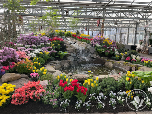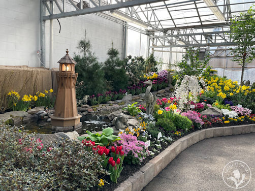 Remember how Dorothy from The Wizard of Oz lived in a world of black and white until she entered Oz (I’m dating myself again, aren’t I)? That is how I feel when I go to the Adams Garden Show. Entering the exhibit, I am transported from my wintery world in its shades of white, grey, and brown to a world of Technicolor brilliance. The show is always a delight with its abundant spring blooms in dazzling colors and fantastic water features, all built inside their greenhouse. The show is an effective way to keep their landscapers employed in the winter as they plan, build, and plant the show’s exhibits each year. In the weeks leading up to the grand opening, employees cover all the greenhouse windows, so customers are left giddy with anticipation wondering what the show will look like this year.