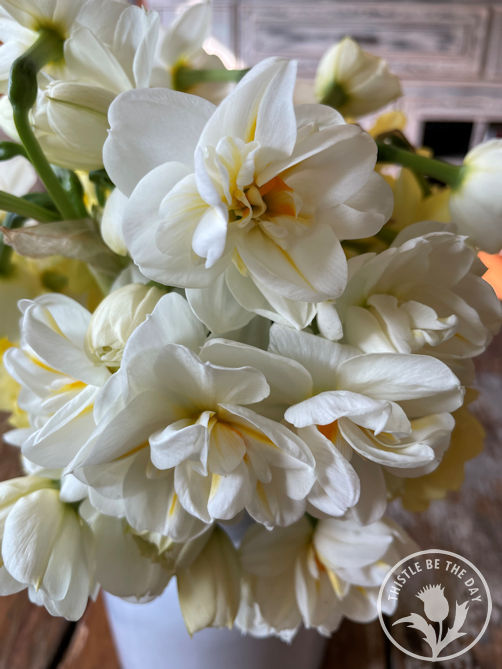 So, with all of my floral memories, I wasn’t surprised recently when I had an experience with a woman inquiring about my flowers. We started talking about daffodils, and I asked her if she’d ever grown the fragrant variety, Sir Winston Churchill. I had just planted this variety for the first time in the fall, and when it bloomed this spring, I was blown away by its fantastic scent and petite double flowers. She’d never heard of this daffodil, so I took out a stem and let her smell them. She immediately grew silent, and tears welled up in her eyes. She looked up at me and said they smelled like her grandmother. She took another sniff and started to cry. She obviously had been very close with her grandmother and missed her very much. Tears welled up in my eyes as well. There was a moment of silent understanding as we looked at each other. She thanked me before parting ways. I completely understood what a strong emotional response the scent of certain flowers could elicit.