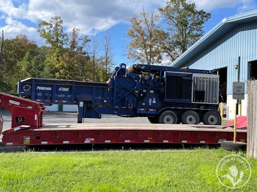 The entire composting area is sited on a concrete pad to prevent contamination. If it rains, wood chips are used to soak up the water to avoid runoff and are then added back into the compost pile. Bays are created using large concrete blocks to separate some of the phases of the composting process. UCRRA is strict about what goes into their compost. Commercial business composting partners are registered and trained to ensure the correct items are brought to the facility. UCRRA employees are also trained to distinguish between compostable and non-compostable items to screen out unwanted materials. Pre-chipped wood is not accepted to ensure there are no chemical additives. They use a facility wood chipper to break down branches and untreated wood items such as pallets. These are then added to the fresh compost.