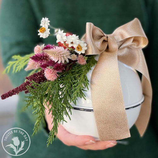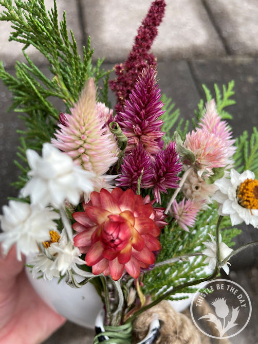 Now that the outdoor farming tasks were complete, I got to play with our dried flowers indoors. It was a treat to continue working with flowers, even in the off-season. I kept busy in November crafting dried flower pumpkins for fall and Thanksgiving and festive holiday decorations for December. I love sharing our dried flowers, and it was fulfilling to know that our community would enjoy them during their holiday traditions. Bringing joy from our farm to people’s homes is immensely gratifying.