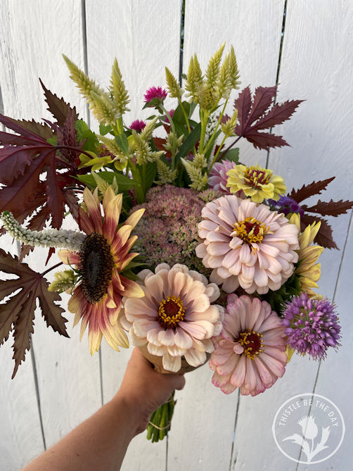 I loved these tall varieties even more when I discovered that sedum makes an excellent cut flower! Their upright stems, large flowers, and long vase-life make them ideal cut flower ingredients for bouquets and arrangements. They have a relatively long harvest window, as the stems can be cut when the flowers are in bud or open. I adore the texture and color of the closed bud stage of these sedums. They add a wonderful textural element that adds interest when paired with other blooms. The colors will change as the flowers start to open, yet they still pair nicely with a wide variety of flowers. They also look lovely standing alone as a bunch within a vase.