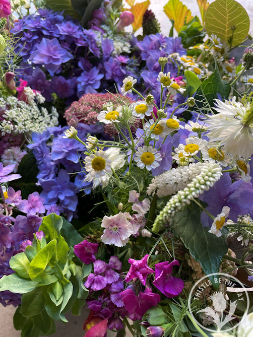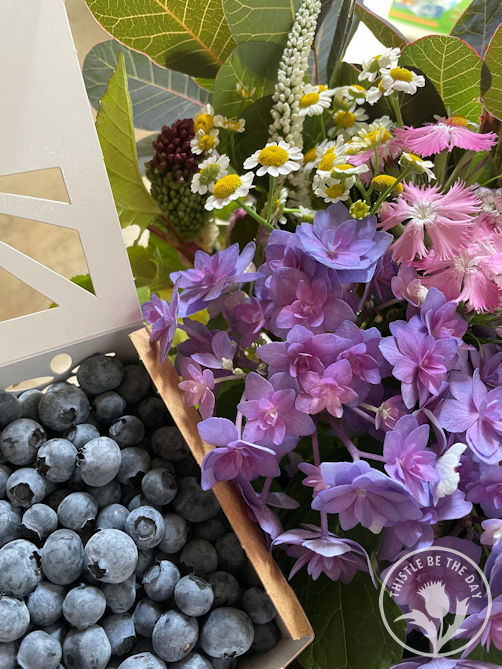 July brought flowers such as hydrangeas, snapdragons, feverfew, celosia, gomphrena, Cerinthe, salvia, amaranth, marigolds, zinnias, and more! It was a beautiful time on the farm. I thoroughly enjoyed returning to the blooms each time I arrived home. I love harvesting flowers for our CSA members and our community and drying them for future projects. July was also when we completed our Berries & Blooms CSA, sharing weekly bountiful bouquets and our fresh blueberries with our members. It brings me such joy to share what I grow with our community.