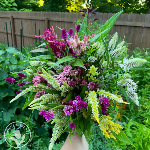 Now that our trips are over, I look forward to settling back into a routine on the farm. Once I catch up on weeding (does anyone ever catch up on this task?) I can enjoy the blooms that August will bring. The petals of our first sunflowers of the season are just starting to open, and the zinnias and celosia are in full swing. Hopefully, our dahlias will decide to join them, and we will enjoy some of their blooms in the upcoming weeks. I also look forward to our final CSA of the season and the cooler temperatures and slower pace that fall will eventually bring. That’s what’s been growing on in my garden; what’s been growing on in yours?