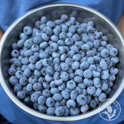 Besides flowers, we also had plenty of edibles growing on the farm! Our blueberries were in peak production in July, and we harvested bowl upon bowl of the sweet berries. Peppers, tomatoes, bush beans, herbs, and cucumbers were also abundant. Each time I arrived home, I would excitedly run out to the veggie patch to see what had grown while I was gone. After eating at restaurants while away, feasting on homegrown produce was such a treat!