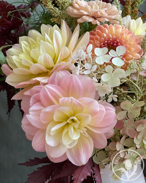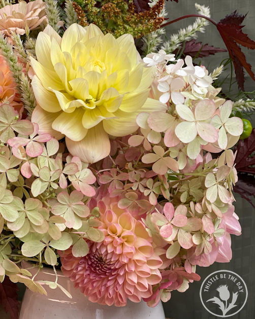 September was filled with other fall blooms besides sunflowers, such as hydrangeas (which take on a gorgeous color transformation in the fall), Japanese anemones, helenium, marigolds, cosmos, zinnias, celosia, and, of course, the queen of the fall garden, dahlias.