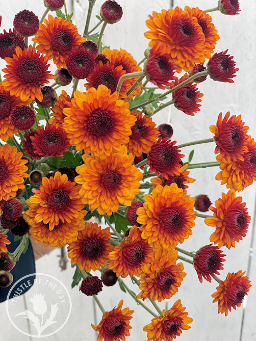 This season, we held a small trial of heirloom chrysanthemums to see if they would grow well on the farm. We grew five varieties: Bronze Fleece, Kelvin Tattoo, Annie Girl, Seaton’s Coffee, and Kokka Hougiku. They began to bloom in October and were truly lovely. I was pleased with the results and plan to extend our trial into next season. It was lovely having flowers on the farm even after the dahlias started to fade. Dare I say that chrysanthemums may compete with dahlias as the queen of the fall flowers!