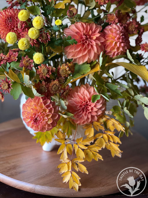 Every season, I have a ritual before a hard frost comes and before I dive headfirst into all the fall farm chores that need to be completed. I make one last arrangement just for me. I take my time harvesting and foraging for the ingredients, stopping to soak in the beauty of every petal and leaf. I stop. I breathe. I reflect. As I place each stem into the arrangement, I reminisce about the season, what I loved and didn’t, the triumphs and failures, what I learned and can teach, and which direction I want to take our farm in the future. But most importantly, I take a moment to be grateful for playing a part in bringing beauty and joy into the world through flowers.