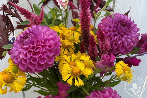 For the past three years, we have increased the number of dahlias we grow. In 2024, we more than doubled the number of plants grown from the previous season, reaching nearly 200 plants in over 30 varieties, including three Whistling Bee varieties bred here on the farm. These are small numbers compared to the larger flower farms, but they seem to be the perfect amount for our micro-farm with limited growing space. During the season, I closely monitored all the varieties. I took photographs and notes regarding plant health and the productivity and vase life of the blooms, much like in our 2023 Dahlia Project. As a cut flower farm, we are looking for varieties that work well in bouquets, have a good vase life for our customers, and produce abundant blooms and tubers. We trial several new varieties each season and grow a few open-centered types solely to feed the pollinators.