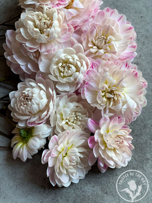 While I know making all the other dahlia decisions will be difficult, I’m happy to have finalized our decision on these spectacular varieties. They have quickly earned their spot on the farm in the 2025 growing season. I’d love to hear your thoughts on these dahlias and recommendations for others you think we should grow. Tell me about your dahlia unicorns or varieties that always make your must-grow list. And if you are also preparing to make difficult dahlia decisions, I wish you luck!