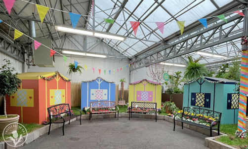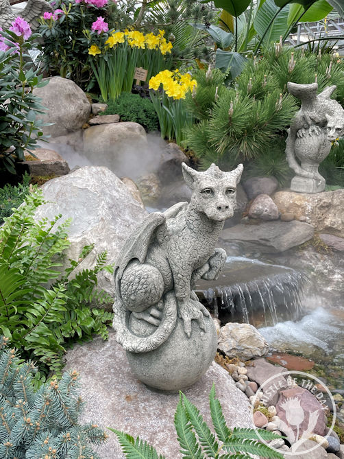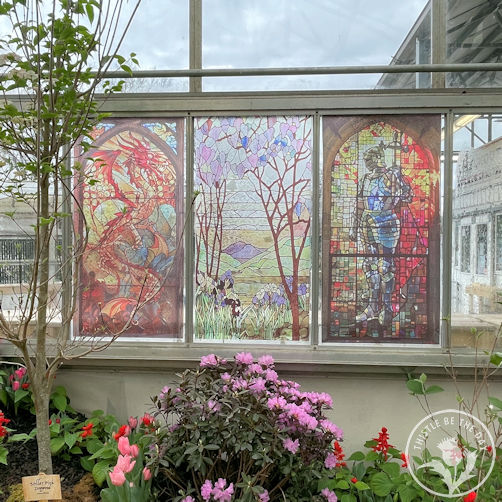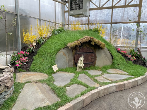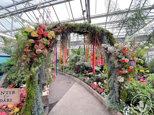 Last year was the first year the show had a theme, Adams in Wonderland, and this year, the theme was the Renaissance. In keeping with the theme, there were nods to wizards, dragons, castles, and royalty throughout the show. There was even a hobbit house with a wishing well, recreated shops in the square, and a castle with a drawbridge and moat, all inside the greenhouse display.