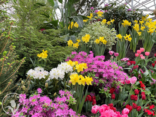 It’s that time of year again when I step out of the cold winter weather into a magical spring wonderland. It’s time for the Adams Fairacre Farms Garden Show! I can’t believe this will be my fifth year taking you along with me on this field trip. I’ve been attending the Adams Garden Show for over seventeen years, and it never disappoints! It always seems to come when I need it most, when I desperately long for spring and fresh flowers. And this year, after a particularly harsh winter, I was so excited to walk into that greenhouse and feel like it was spring.