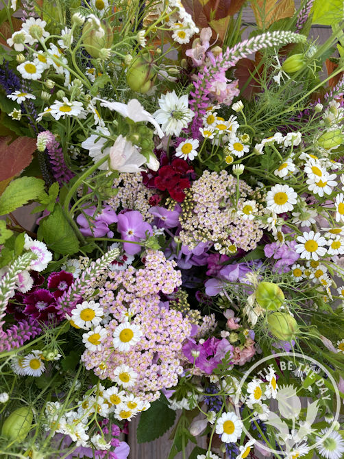 I started growing feverfew as a cut flower in 2024. They make fabulous cut flowers as they are long-lasting, and their branching habit makes them ideal filler flowers for bouquets. I love the way the whimsical mini daisy-like flowers look in our bouquets, and they pair well with any color palette. They bloom in early summer, but if picked hard, you can get a second flush of flowers in the fall. I started our feverfew last season from seed and planted the seedlings out in early spring. I got a respectable harvest the first season. The plants overwintered, and this season they bloomed prolifically.