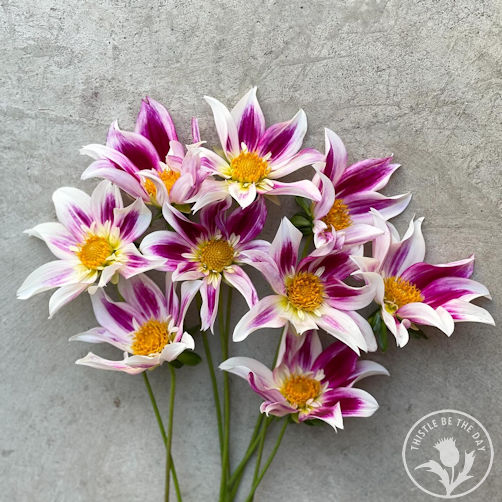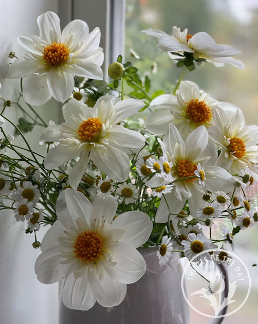 Sweet and Simple Arrangement of Alpen Cherub Dahlias and Feverfew